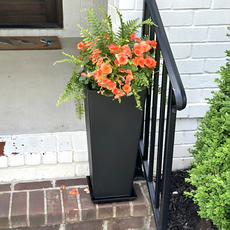 - Dimensions & Details: Each planter stands 24 inches tall and measures 10 inches wide and 10 inches long. Included saucers, 9 inches wide and 9 inches long, fit securely to catch excess water and keep your space clean.